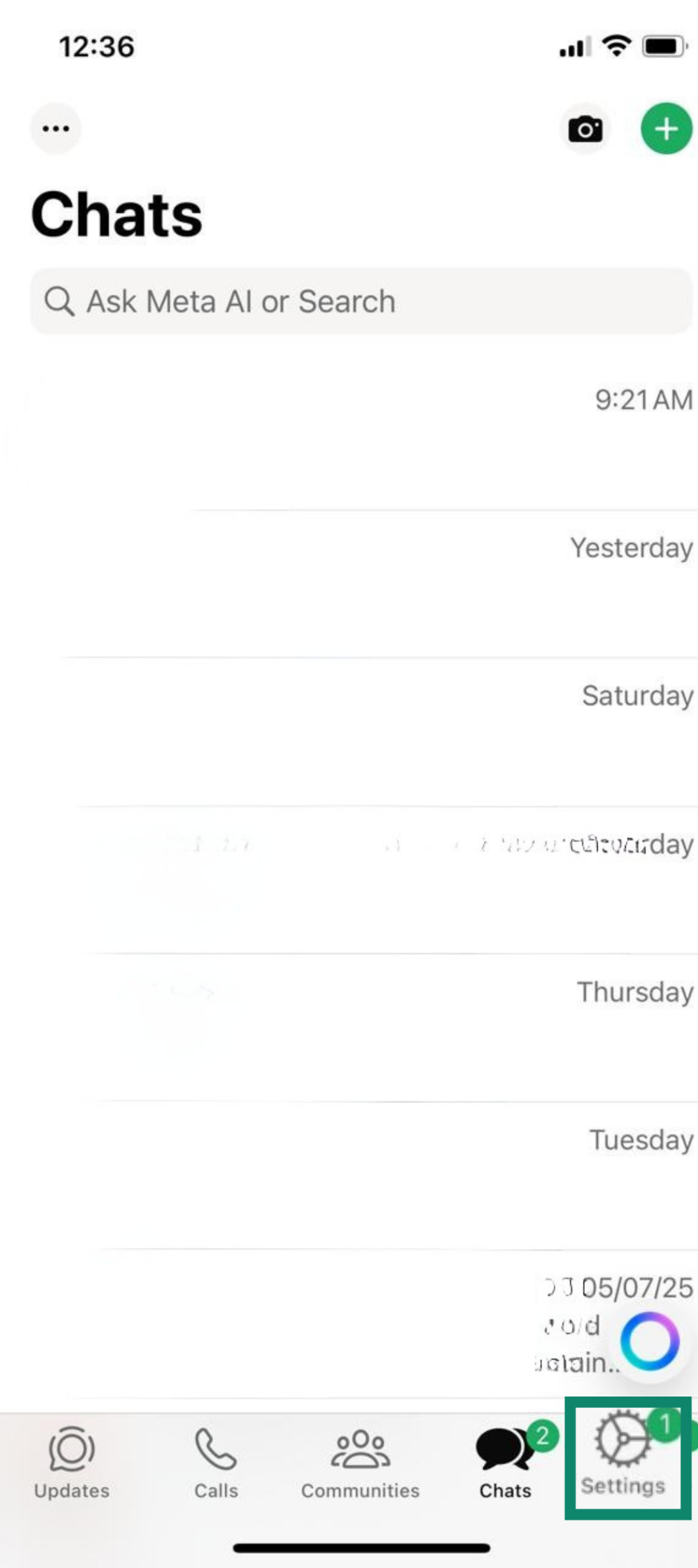 1. Open WhatsApp and tap the Settings icon in the bottom right.