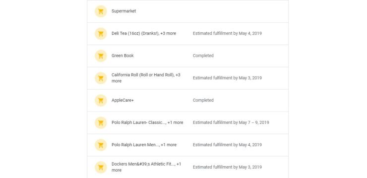 The page is not limited to purchases made directly from Google, either. From flight tickets to Amazon purchases to food delivery services, if the receipt went to your Gmail, it’s on the list.