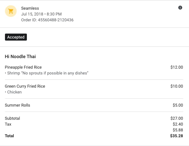 The recorded details can get a little creepy, too. A reporter from Buzzfeed saw Google record specific food requests she added to one of her takeaways.