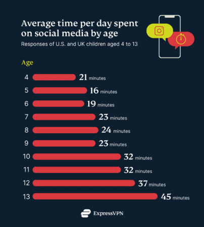 To better understand the extent to which children use social media and to uncover the risks of doing so, ExpressVPN surveyed over 2,000 children aged 4 to 13 in the U.S. and UK who have access to the internet, as well as their parents or guardians (over 2,000 adults).