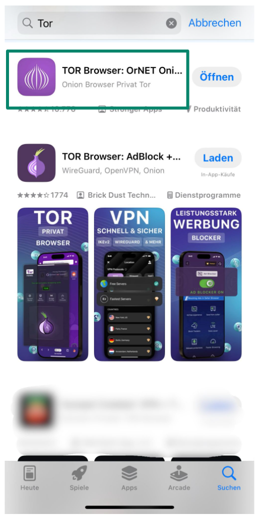 1. Laden Sie den Onion Browser aus dem App Store herunter (vom Tor-Projekt empfohlen).