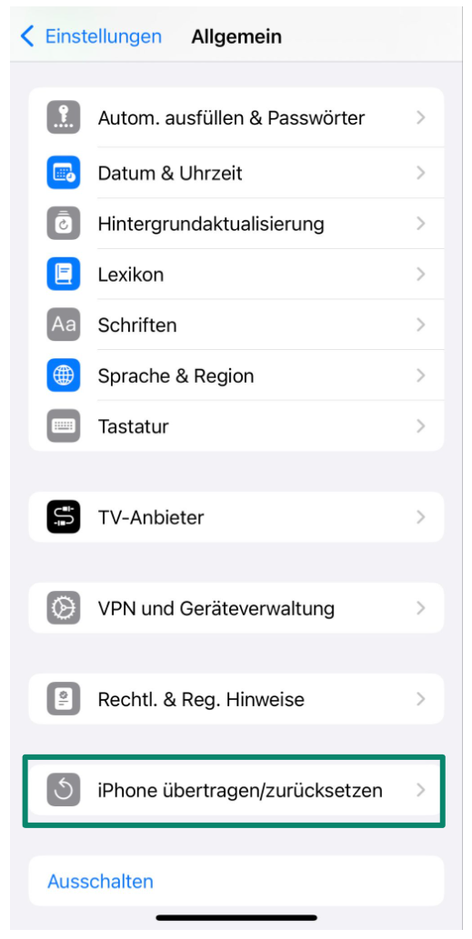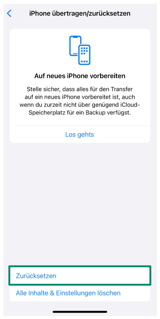 2. Blättern Sie nach unten und wählen iPhone transferieren oder zurücksetzen.