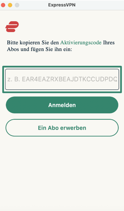 - Starte ExpressVPN nach der Installation und logge Dich mit Deinem Aktivierungscode in die App ein.