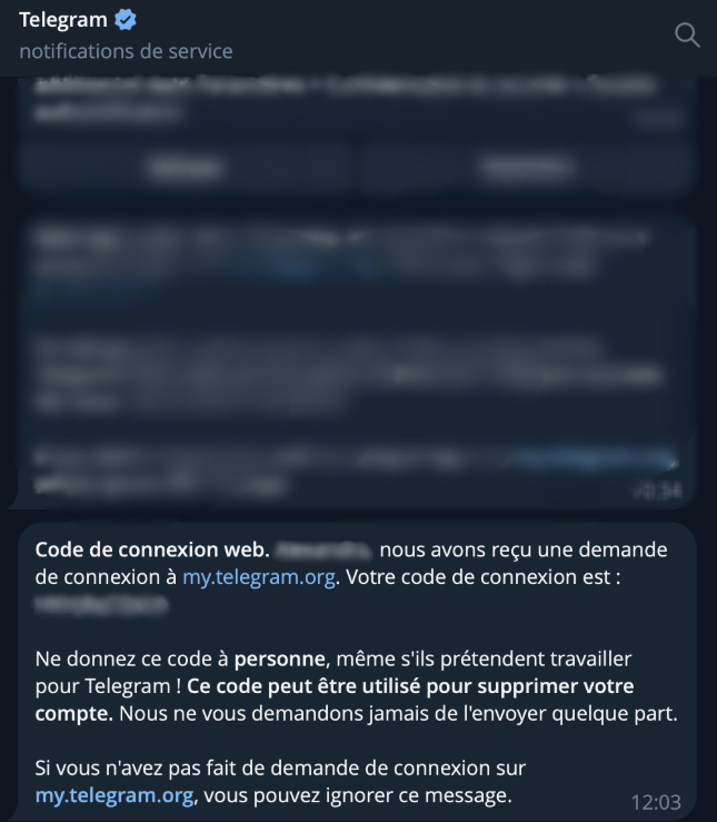 - Vérifiez votre application Telegram pour obtenir un code de confirmation.
