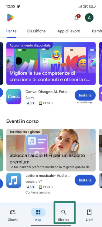 - Apri il Google Play Store sul tuo dispositivo Android.