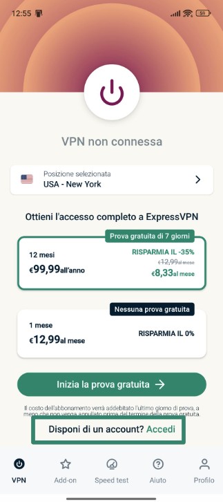 - Avvia ExpressVPN e tocca il pulsante Accedi per entrare nell'app con le tue credenziali.