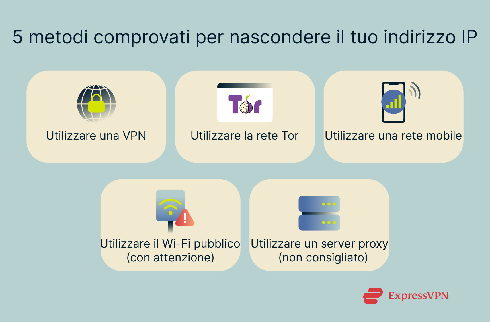 È possibile, tuttavia i metodi alternativi per nascondere l'indirizzo IP non risultano altrettanto efficaci. Ad esempio, l'uso della rete Tor comporta connessioni a velocità notevolmente inferiori. Inoltre, Tor cripta il traffico solo all'interno della sua rete, quindi il tuo ISP saprà che ti stai collegando a Tor, anche se una volta che sei dentro non potrà sapere dove sia diretto il tuo traffico.