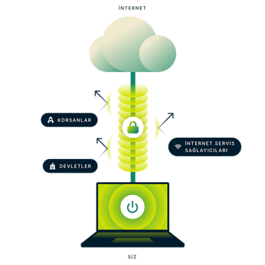VPN, veya virtual private network (sanal özel ağ), cihazınız ve internet arasındaki güvenli bir tüneldir. VPN'ler sizi çevrimiçi gözetlemeden, müdahaleden ve sansürden korur.