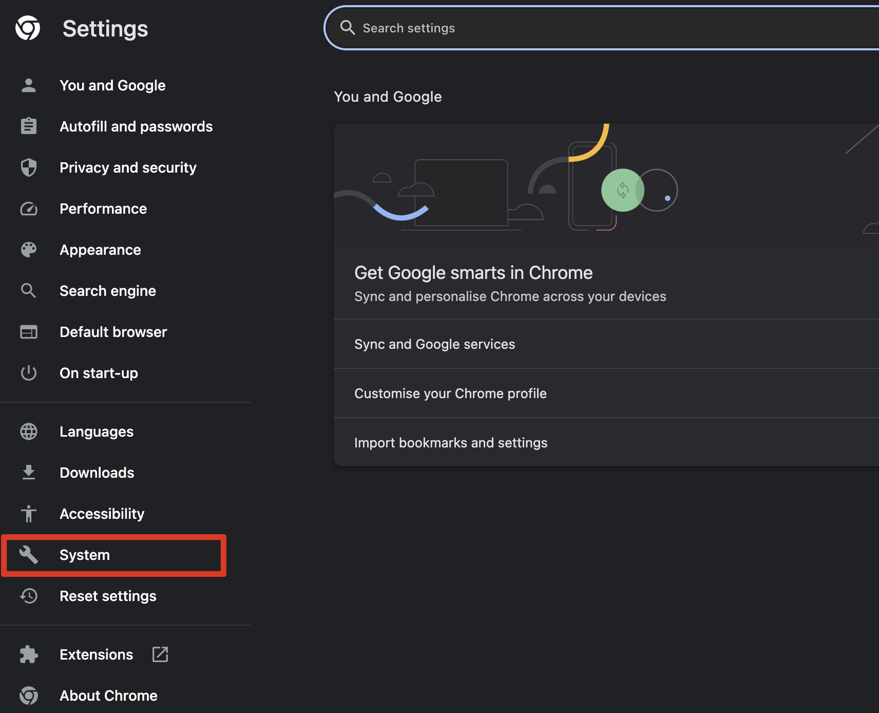 4. Confirm that Use hardware acceleration when available is turned on. If it’s not, toggle the switch to enable.