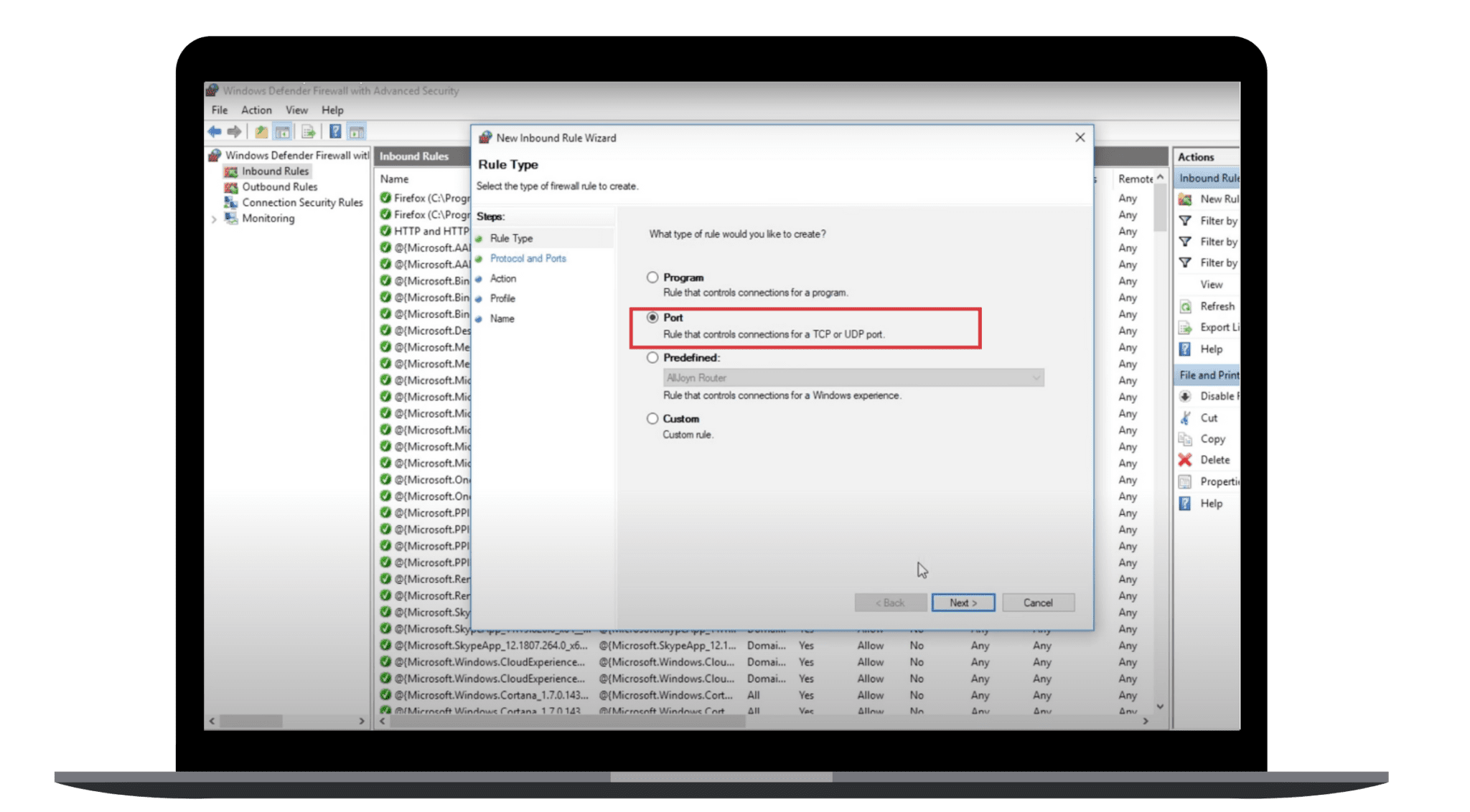 4. Sélectionnez Port et cliquez sur Suivant.